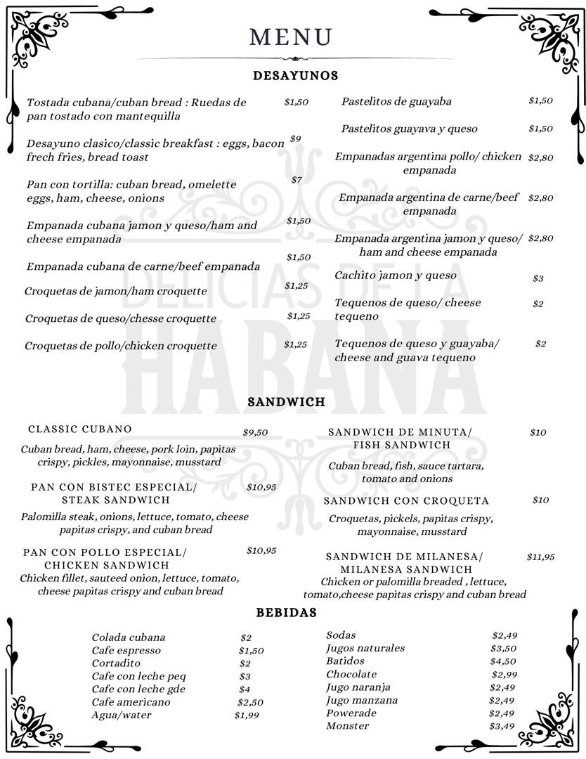 As you enter, the cheerful decor and the tantalizing scent of fresh ingredients will draw you in, prompting you to linger a little longer. Delicias de la Habana prides itself on serving food that feels like home-cooked meals, crafted with care and skill. With a menu packed with authentic Cuban delights, every dish promises a symphony of flavors. From the Sandwich De Milanesa bursting with juicy tenderness at just $13.98, to the classic Pan Cubano that delivers a delightful crunch and chew for only $12.81, your taste buds are in for a treat. The Pan Con Croqueta ($11.64) and Pan Con Bisteck Especial ($12.81) are must-tries that showcase the rich culinary heritage of the region.