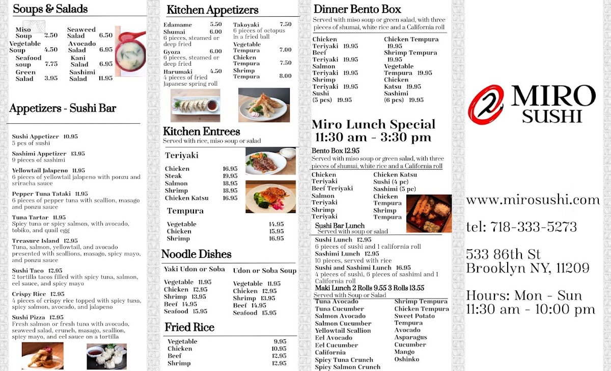 Welcome to Miro Sushi, a hidden gem nestled in the Bay Ridge area of Brooklyn. This enchanting sushi restaurant is the perfect destination for sushi aficionados and casual diners alike, eager to indulge in the rich and vibrant flavors of authentic Japanese cuisine.