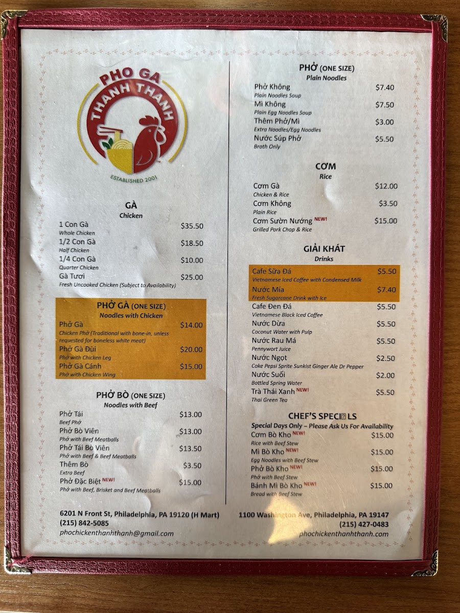 Welcome to Pho Ga Thanh Thanh, a beloved gem nestled in the heart of Philadelphia, where aromatic flavors and genuine hospitality intertwine to create a dining experience that's truly memorable. Specializing in traditional Vietnamese cuisine, this restaurant focuses primarily on its exquisite pho offerings, making it an essential stop for anyone craving a delicious bowl of comfort.