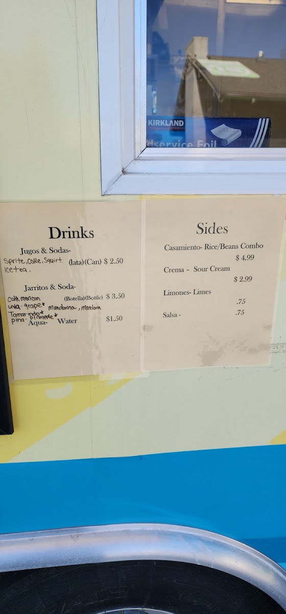 As for refreshments, indulge in a range of beverages to complement your meal, including Jarrito Mexican Bottle Sodas for $3.75 or a classic Mexican Coke for the same price. A thirst-quenching experience for just the right amount of money!